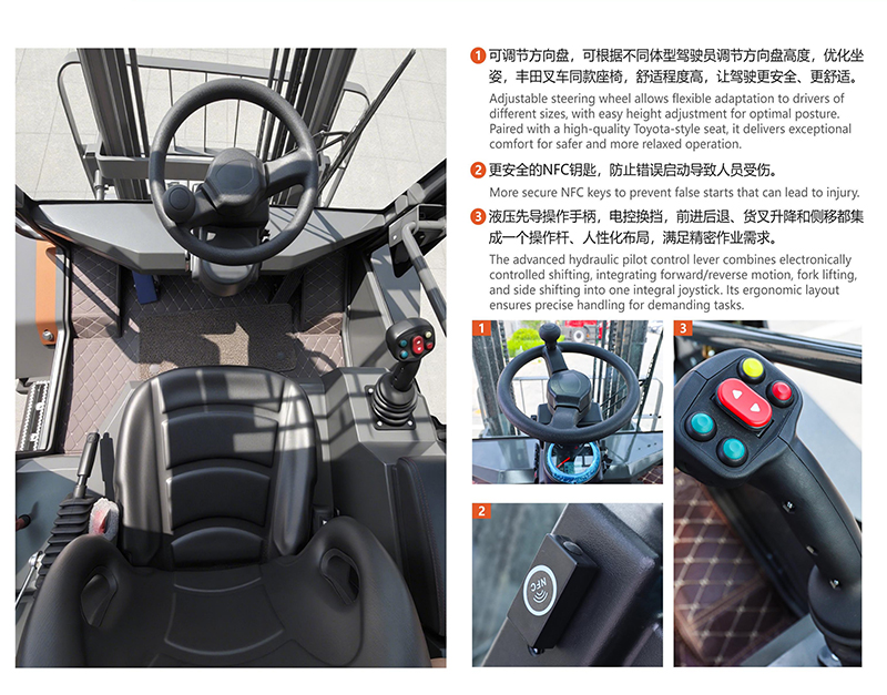 超大面積的有色玻璃、較低的室內噪音水平,獨立的暖風和空調系統以及寬 敞的室內空間,給駕駛員帶來了極大的舒適性。